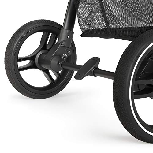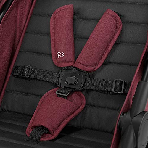 La cintura di sicurezza in 5 punti assicura al genitore il fissaggio semplice del bambino. Le quattro ruote, tutte dotate di ammortizzatore, permettono una buona stabilità anche su terreni poco lineari, evitando scossoni al piccolo. La cappottina parasole è comoda per i raggi uv ed è regolabile per coprire in maniera ampia il bambino.