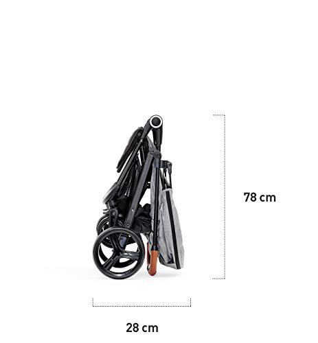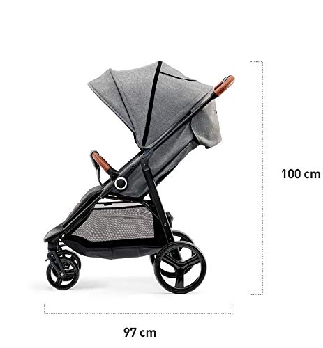 È un passeggino abbastanza compatto, che non implica un ingombro eccessivo. Le sue dimensioni sono abbastanza contenute, per cui è possibile trasportarlo con abbastanza facilità e senza troppa fatica. Il passeggino da aperto ha una lunghezza di 95 cm e una larghezza di 57 cm, mentre misura 106 cm in altezza. Da chiuso risulta ancora meno ingombrante e ha una lunghezza di 27 cm, una larghezza di 57 cm e un’altezza di 83 cm. Le ruote sono resistenti ma non hanno una struttura troppo grande. Il loro diametro è contenuto (16 cm per le ruote anteriori e 25 cm per le ruote posteriori). Il peso del passeggino è di 10,2 kg.
